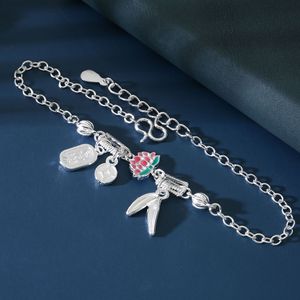 8507号足银990珐琅莲花喜乐手链女纯银轻奢小众精致女生手饰