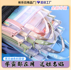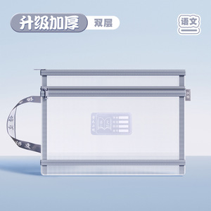 学科科目袋双层分类拉链大容量学生作业袋透明网纱A4资料文件袋