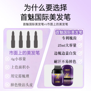首魅国际新款补色遮盖美发笔白发临时补色防水防汗自然快速美发棒