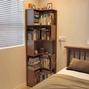 实木转角书架落地置物架家用客厅角架靠墙收纳架简易拐角床头书柜