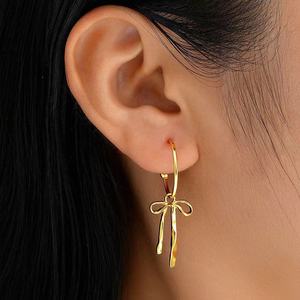 跨境热销简约镂空金色蝴蝶结耳环小众时尚设计感光面ins风耳饰女