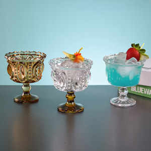 法式浪漫复古浮雕香槟杯高颜值中古微醺酒杯红酒高脚皇冠玻璃杯子