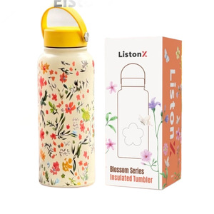 ⇡2025新款跨境1L保温杯大容量广口便携真空运动水壶户外印花水杯