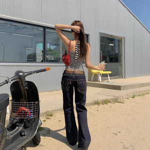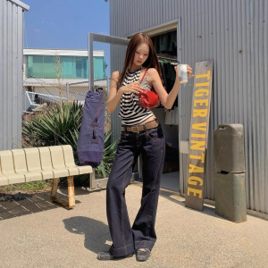 ~~~~~韩国小众 25新款 Jennie同款 低腰微喇铆钉显瘦牛仔裤