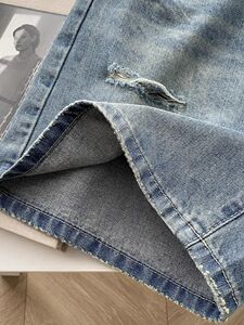 梨形身材破洞牛仔短裤女夏季新款大码胖妹妹高腰a字阔腿五分裤子