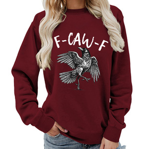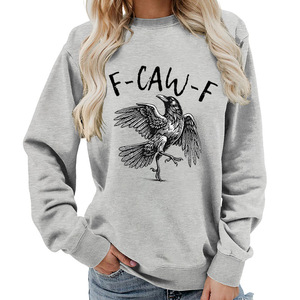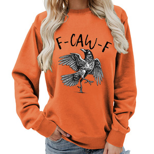 F-caw-f 乌鸦 万圣节印花圆领女上衣卫衣秋冬亚马逊货源休闲宽松