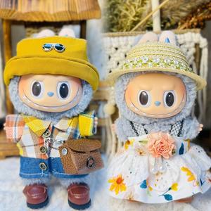 夏日裙17cm一二三代马卡龙拉布布娃衣坐坐派对labubu衣服套装包包