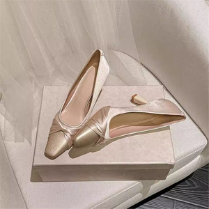 跟晚礼服百搭浅色高跟鞋夏季搭配粗缎面新款的小外穿单鞋气质2025