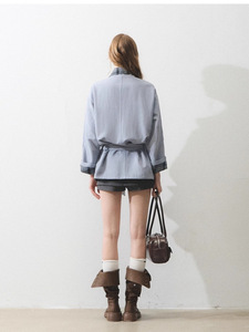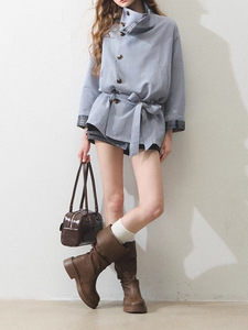 BOHOLBLING 薄荷不凉 复古学院风格纹拼接两面穿宽松束腰风衣外套