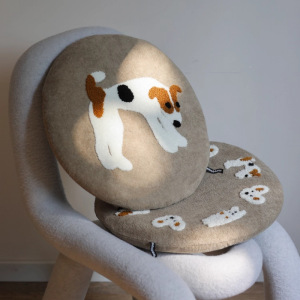小狗系列抱抱暖绒毛巾绣圆坐垫椅子垫记忆棉慢回弹可拆