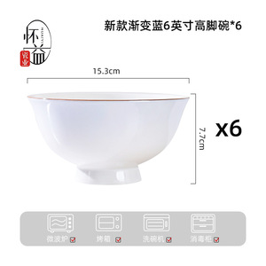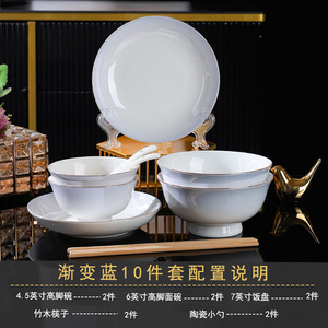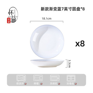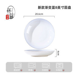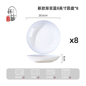 新款渐变蓝高颜值餐盘陶瓷盘家用碗碟套装高级感高温烤花碟子菜盘