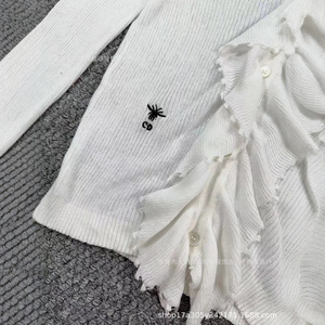 白色v领针织打底衫女内搭春秋季毛衣开衫木耳边小众修身别致上衣