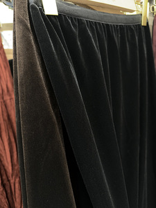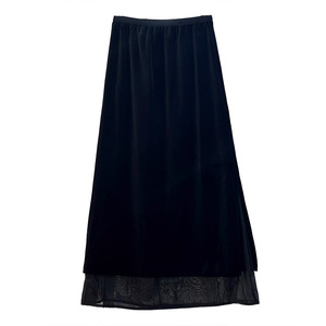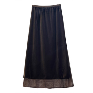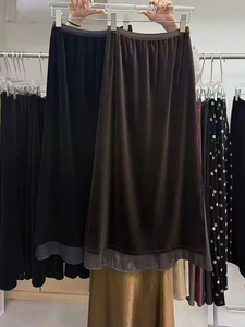 丝绒拼接半身裙2025秋冬新款垂感直筒中长款侧开叉包臂显瘦a字裙