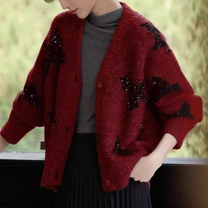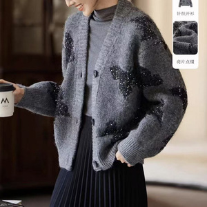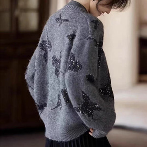 秋冬新款软糯针织外套开衫上衣女休闲风洋气蝴蝶亮片毛衣韩系女装