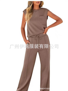 2025夏季新款欧美休闲运动风时尚短袖休闲套装时尚款时尚短袖女装