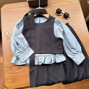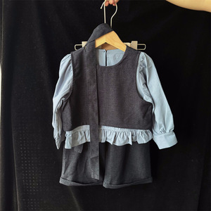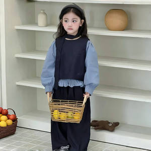 女童韩版长袖衬衫套装2025秋装儿童休闲牛仔阔腿裤时尚洋气三件套