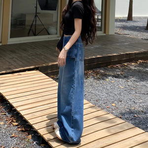 美式阔腿牛仔裤女秋季2025新款大码胖mm显瘦宽松直筒梨型身材裤子