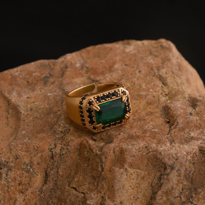 中古复古镶锆绿色戒指开口不掉色活口女士戒子小众轻奢高级感手饰