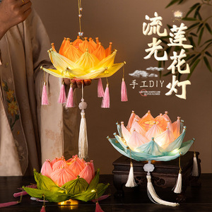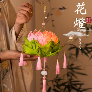 中秋节灯笼莲花灯手工diy材料包儿童手提发光古风纸灯笼批发摆摊