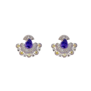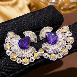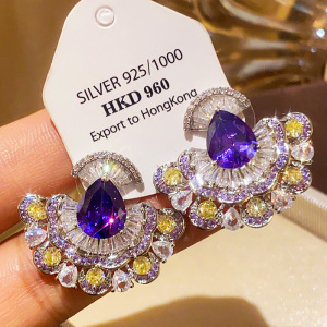 法式银针扇形摆裙锆石耳环轻奢高级感耳钉精致时尚耳饰设计感小众
