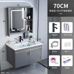 卫生间洗脸盆柜组合小户型浴室柜太空铝一体陶瓷洗手盆家用洗漱台