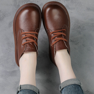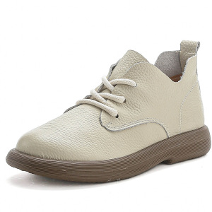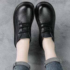头层牛皮秋季女士新款厚底小短靴复古风系带低跟皮靴子真皮妈妈鞋