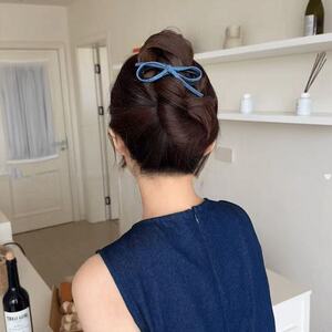复古牛仔蝴蝶结扭扭夹女高级感2025新款一字抓夹后脑勺盘发夹发饰
