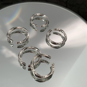 s925纯银开口莫比乌斯环英文涂鸦戒指女小众设计轻奢时尚个性指环