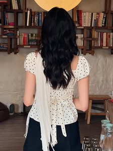 法式波点甜美可爱泡泡袖T恤2025夏季新品轻薄透气显小V领纯欲上衣