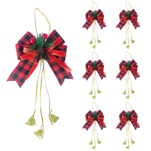 6个圣诞蝴蝶结红色天鹅绒松果松针铃铛圣诞花环装饰厨柜树工艺DIY