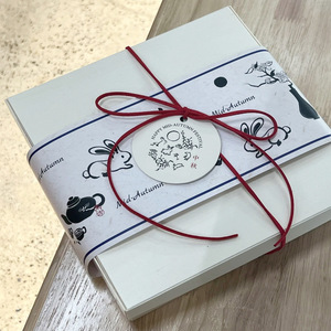 可爱兔印花宣纸+手绘中秋卡片+中秋快乐吊牌+麻绳+六格天地盖牛皮纸空盒一个约24*17*5cm单格