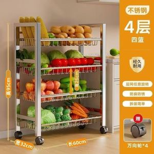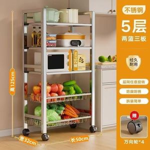不锈钢厨房置物架落地多层蔬菜收纳架家用多功能微波炉锅具储物架
