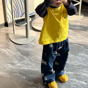 韩版童装男童长袖t恤痞帅春装2025新款休闲儿童酷帅拼色休闲上衣