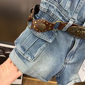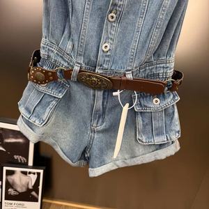 2025年夏季百搭显瘦高腰牛仔复古风腰带搭配抹胸连体短裤