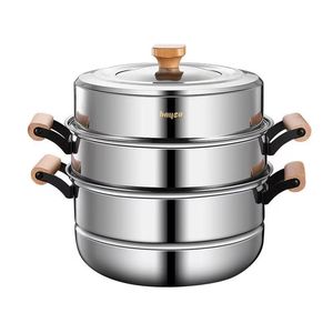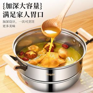 不锈钢蒸锅加厚双层三层蒸锅家用多层蒸屉汤锅燃气电磁炉通用
