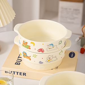 ins风空气炸锅烤箱陶瓷碗沙拉碗陶瓷餐具汤碗双耳甜品陶瓷米饭碗