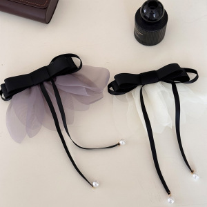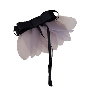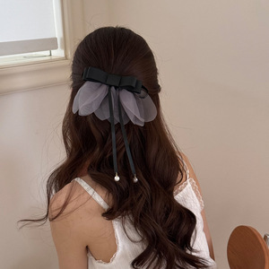 韩国高级感灰色网纱蝴蝶结飘带发夹女气质后脑勺顶夹弹簧夹一字夹