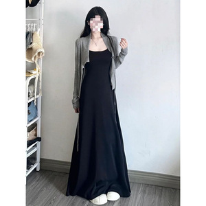 法式黑色吊带连衣裙子女夏季小个子海边度假气质显瘦长裙