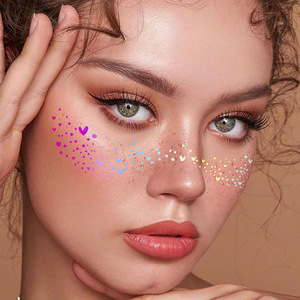 跨境欧美烫镭射雀斑纹身贴烫爆闪烫金彩色脸部化妆派对仿真妆容贴