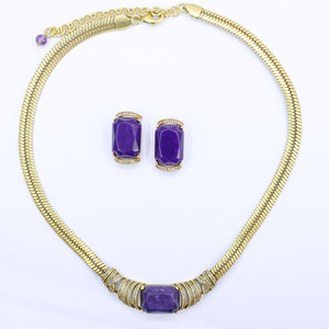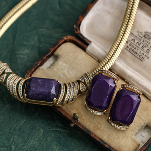 紫色水晶耳钉银耳针女士小众设计感项链锁骨链毛衣链高档首饰套装