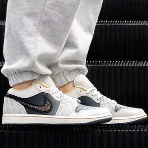 莆田鞋纯原aj1低帮黑灰绸缎男女同款运动板鞋百搭潮流休闲篮球鞋