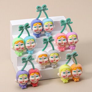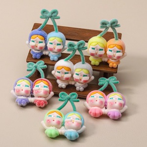 新款植绒樱桃哭娃卡通萌粒树脂办公摆件diy饰品车载配件批发ins风