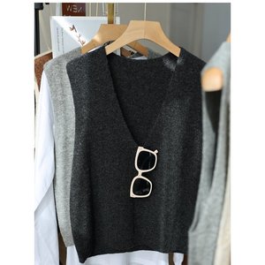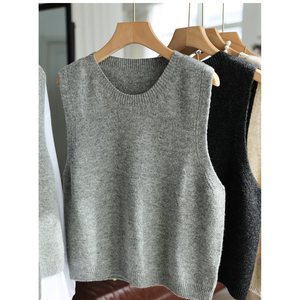 25早秋尝鲜特价~圆V领100绵羊毛针织背心马甲女宽松显瘦 叠穿神器