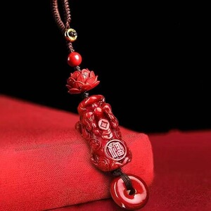 钥匙扣天然原矿朱砂貔貅莲花平安钥匙扣高含量紫金帝王红砂代发