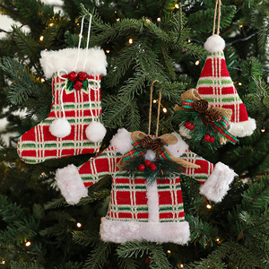 圣诞节装饰品毛绒布艺圣诞袜子帽子衣服装饰品圣诞树装饰小挂件