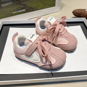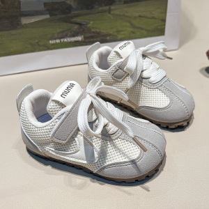 韩版儿童运动鞋复古春夏男童软底网面休闲鞋魔术贴女童透气小童鞋