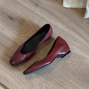 羊皮版~复古文艺风内增高真皮浅口单鞋女简约方头百搭通勤工作鞋