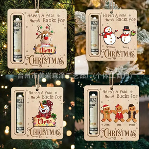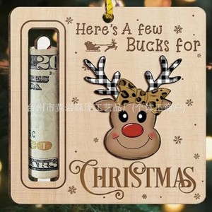 亚马逊跨境木质工艺品圣诞钱夹现金礼品圣诞挂件装饰生日抓周道具