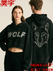 HY男装定制美式潮牌烫钻卫衣时尚街潮连帽卫衣来图定制来样复刻