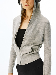 辣妹美式软薄绵羊毛连帽针织开衫拉链弹力修身卫衣毛衣外套上衣女